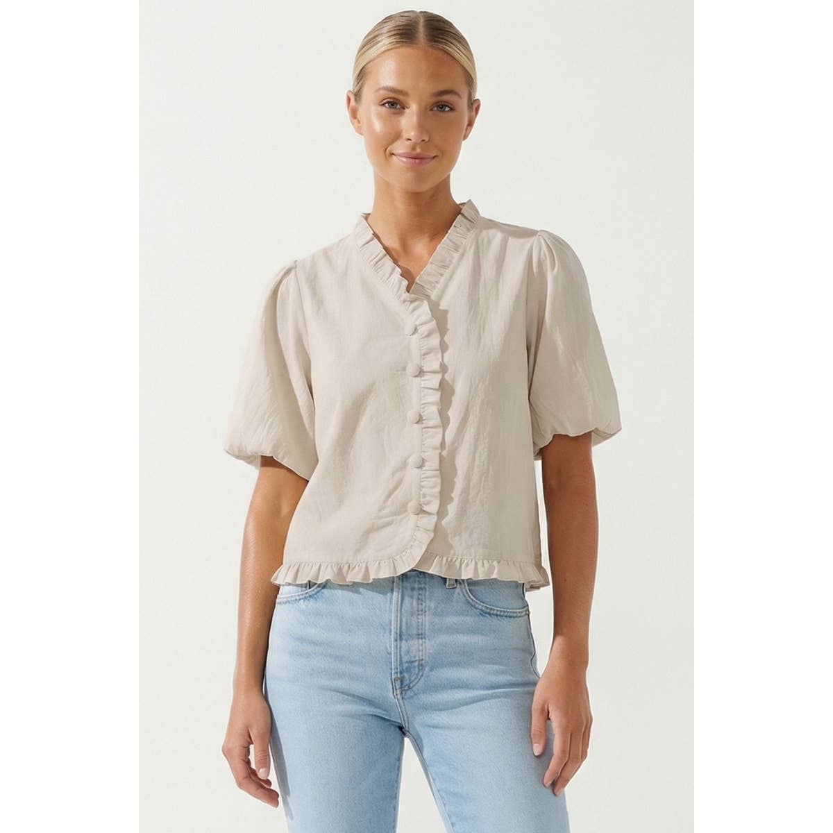 Ruffle Detail Bubble Sleeve Top