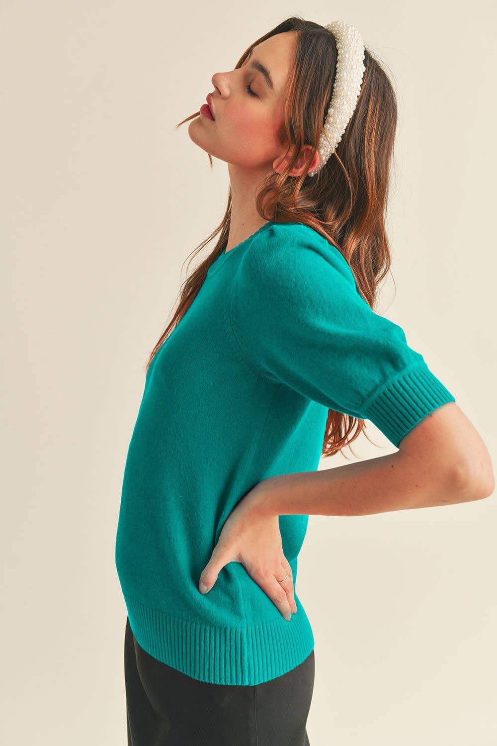 SHORT PUFF SLEEVE SWEATER Teal Green