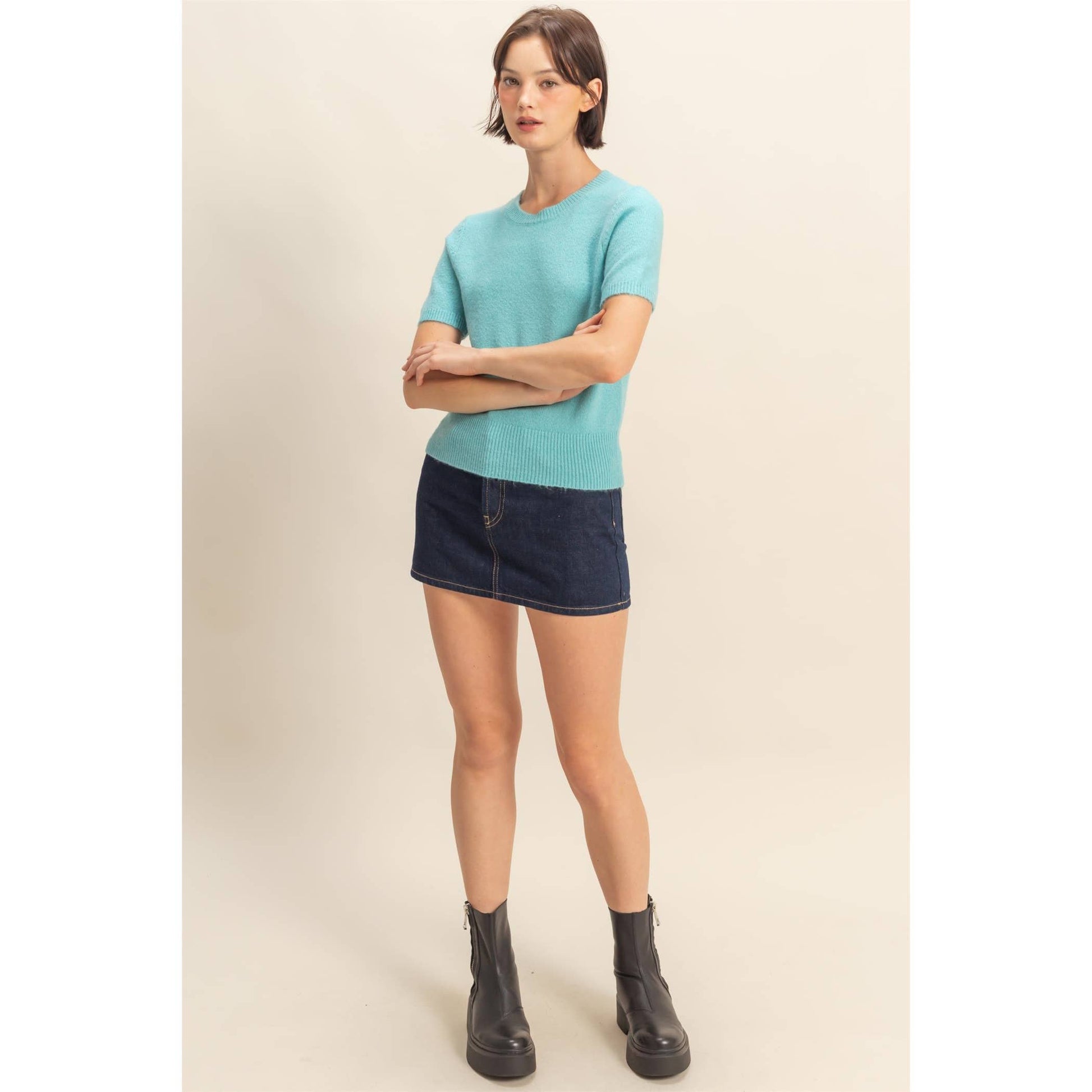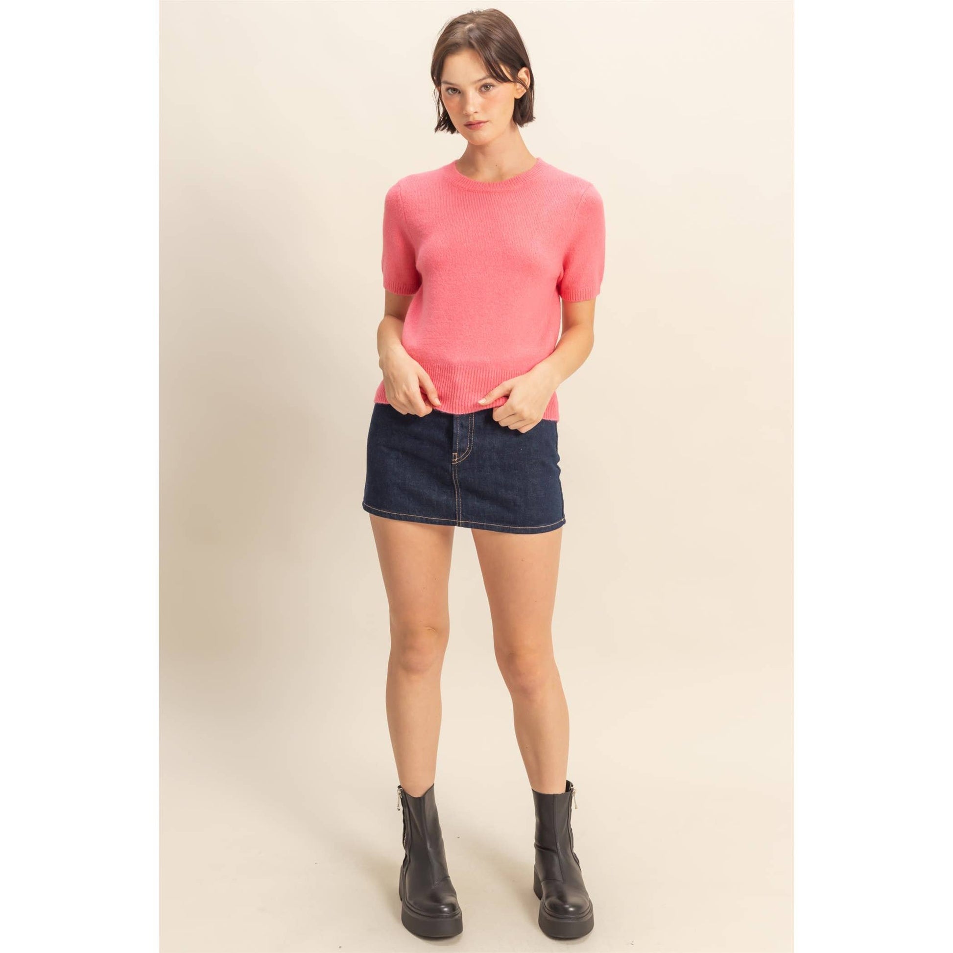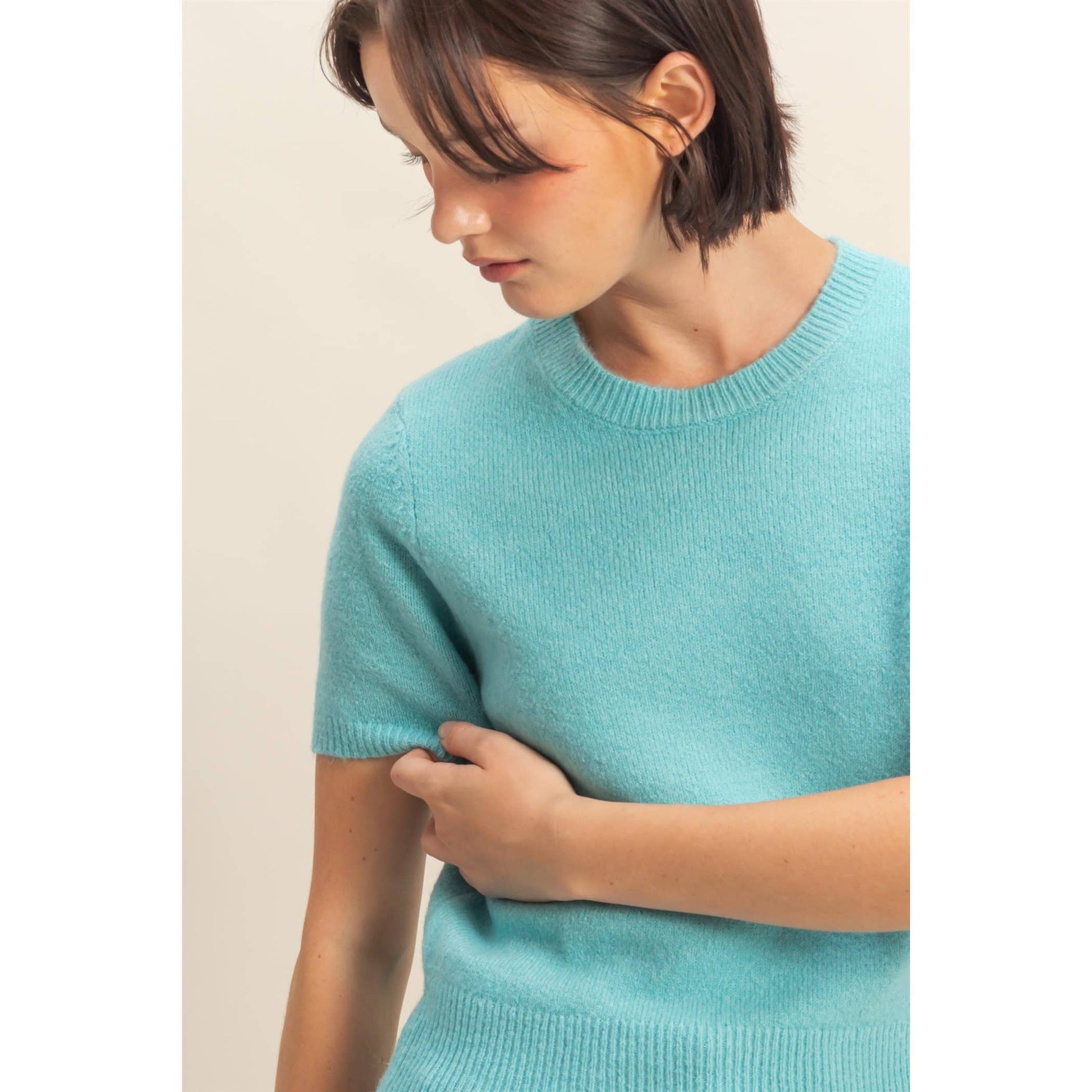 Add A Touch Of Coziness To Your Wardrobe With This Short Sleeve Knit Sweater. Featuring A Classic Crew Neck And A Soft, Comfortable Fabric, This Sweater Is Perfect For Layering Or Wearing On Its Own. The Ribbed Hem And Sleeves Provide A Snug Fit, Making It A Versatile Piece For Any Casual Or Dressy Outfit.